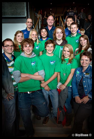 NEMO; André Kuipers & crew; Groepsfoto met schoolkinderen
